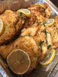 Chicken breast dipped in egg batter and sauteed in a lemon white wine sauce.