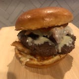 Beef, lettuce, tomatoes, cheddar cheese, mozzarella (white).